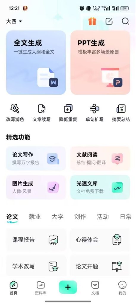 光速写作是一款基于人工智能技术的写作辅助工具,提供人工智能写作及作文评改两项主要功能。该应用能够有效地帮助用户完成从选题、构思到成文、修改的全流程写作工作。 其内置的范文库包含大量优质范文,为用户提供了丰富的学习素材,并有助于提升其写作技巧和水平。
